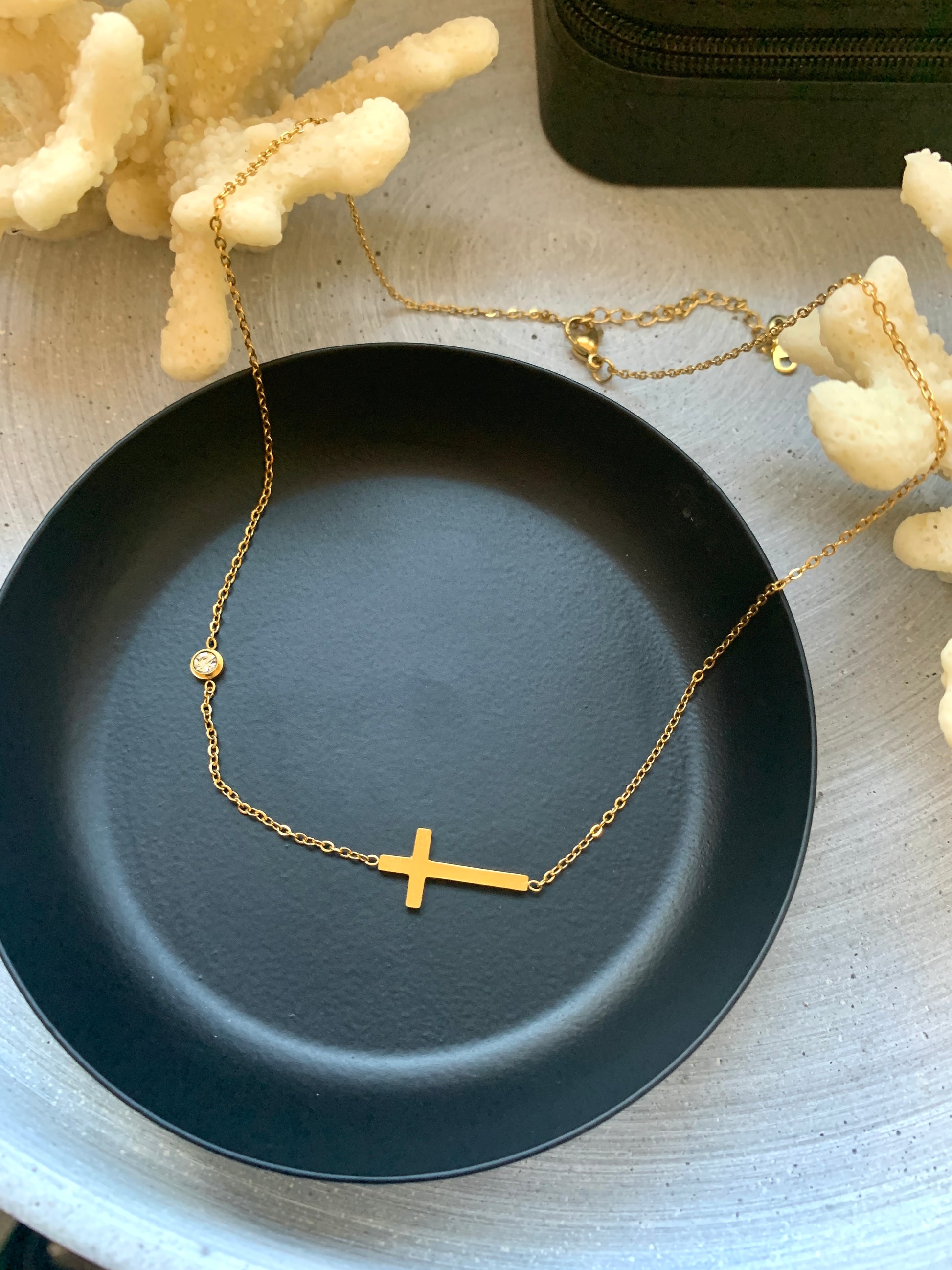 18K Gold Kreuz Schmuckset – Halskette & Armband mit Stein – Natascha Woge®