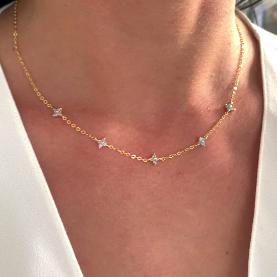 18K Gold Halskette mit blauen Blüten – minimalistische Charms – Natascha Woge®