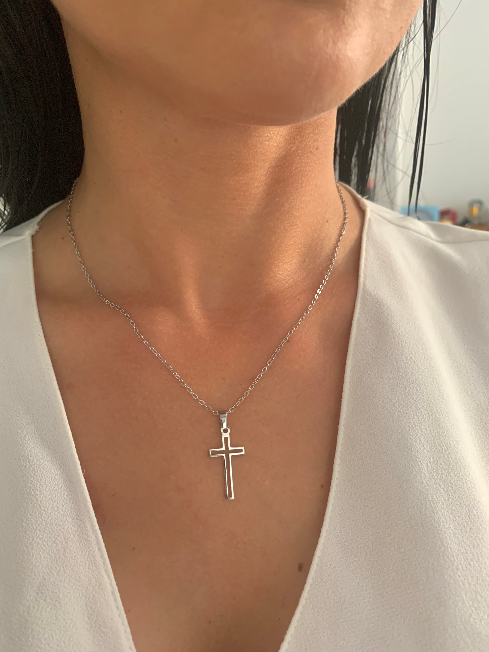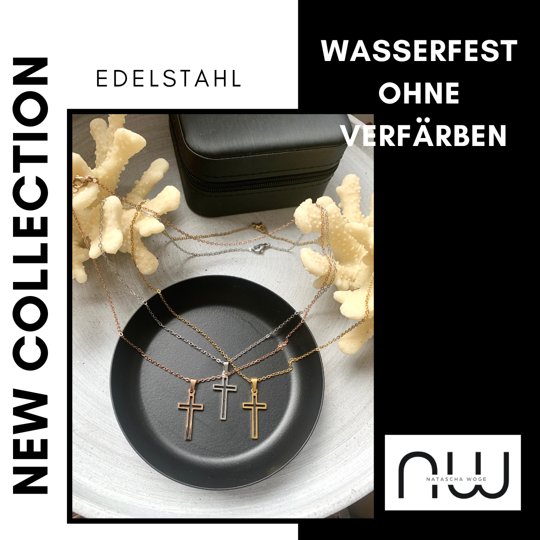Kreuz Halskette – minimalistischer Edelstahlschmuck in Gold oder Silber – Natascha Woge®