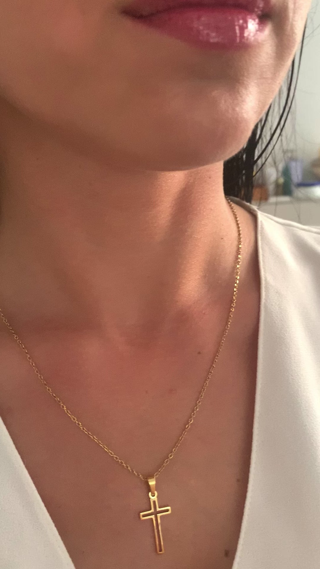 Der schlichte Kreuzanhänger wirkt modern und ausdrucksstark zugleich – ein dezentes Symbol mit Bedeutung.