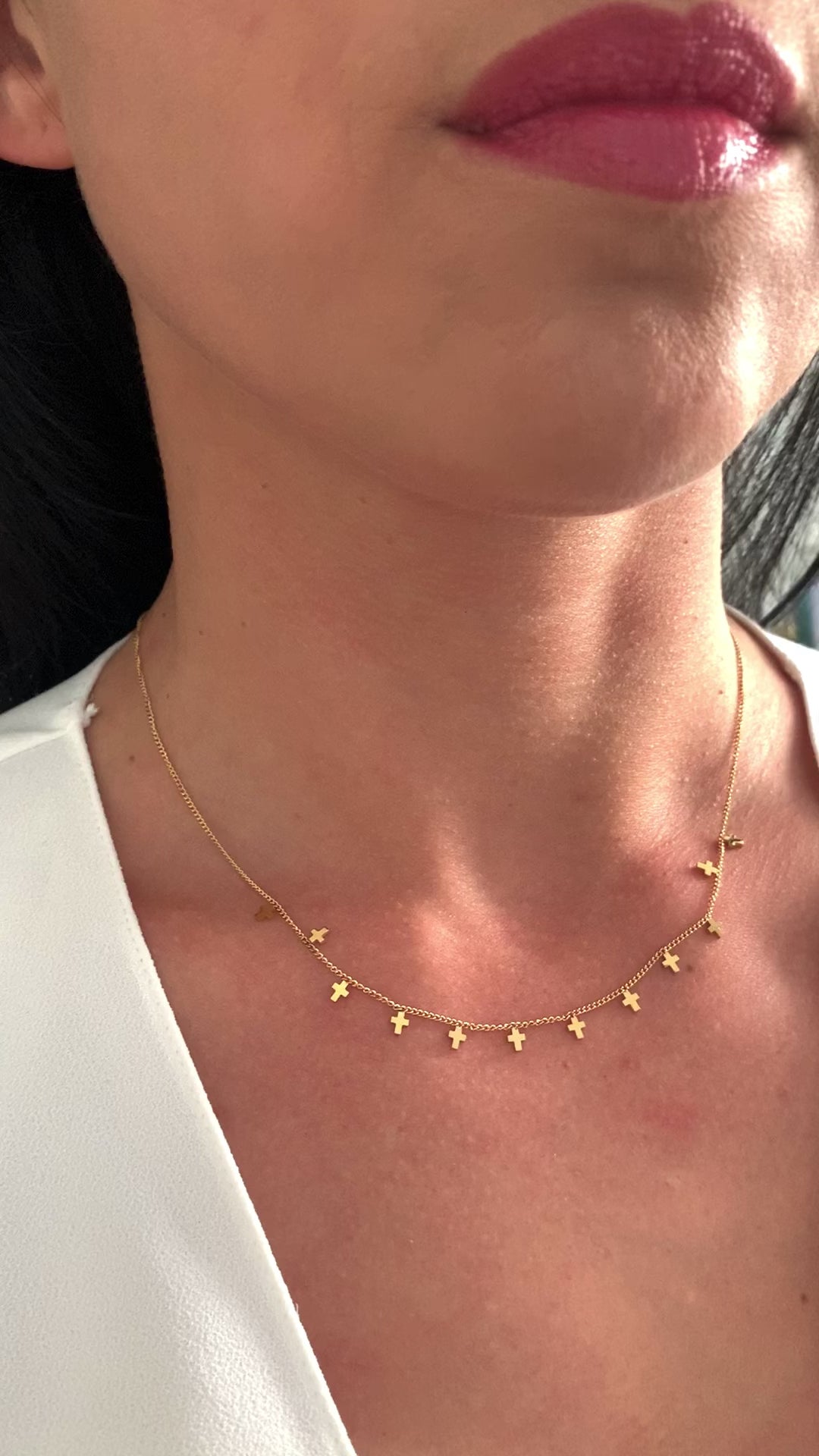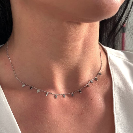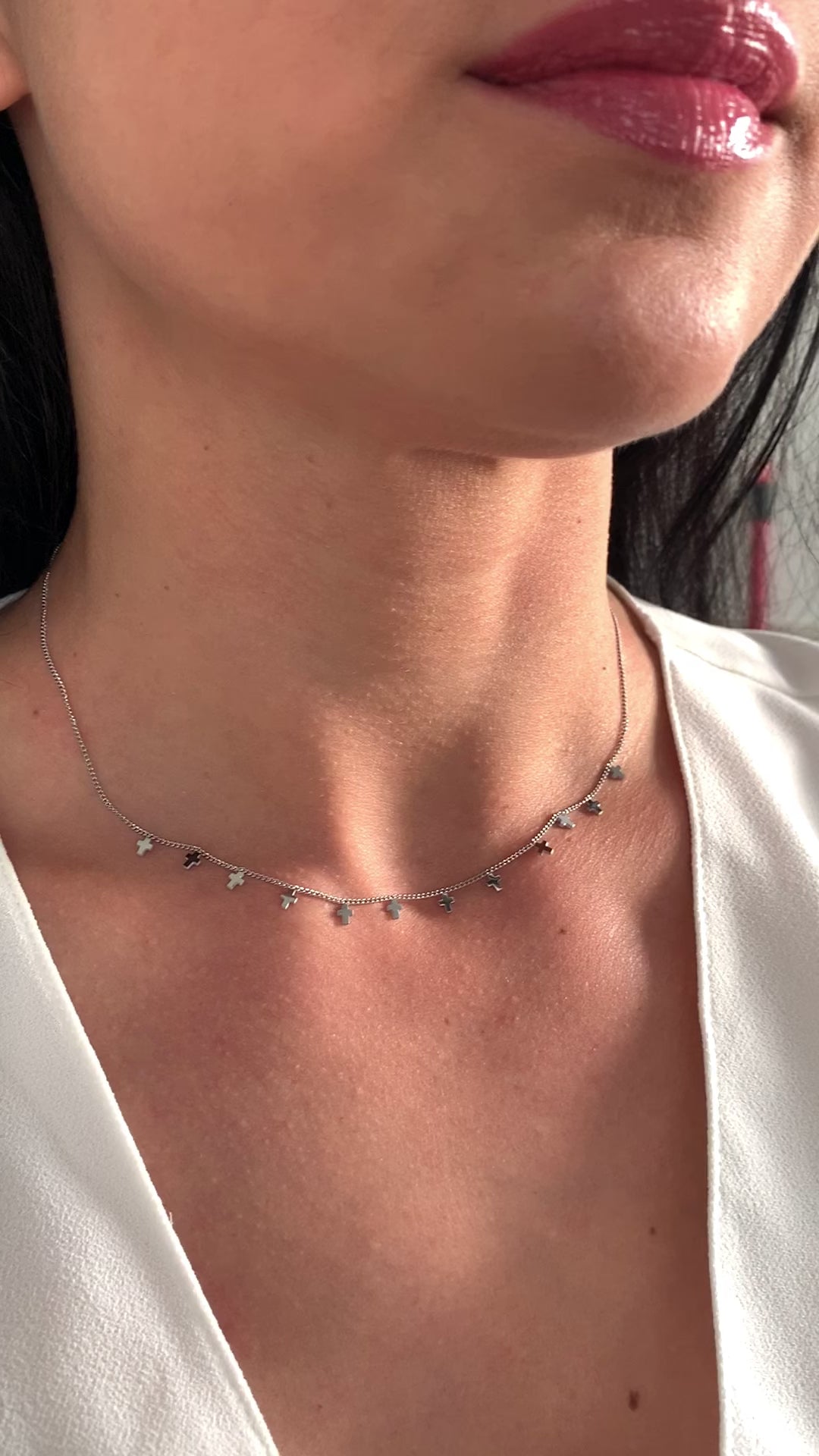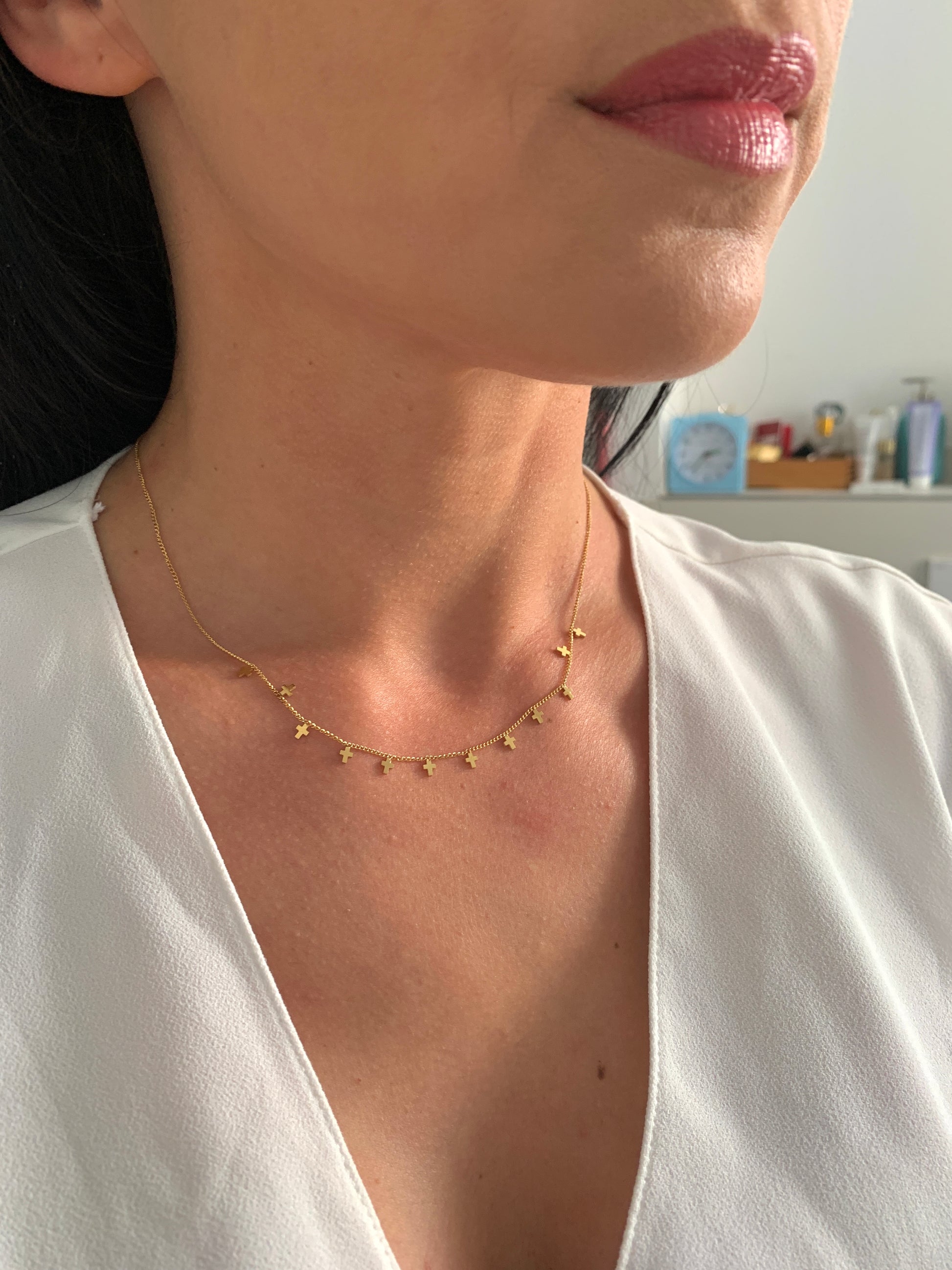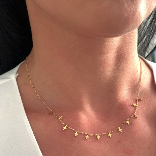 Die kleinen, gleichmäßig angeordneten Kreuze verleihen der Halskette eine ruhige, moderne Ausstrahlung – dezent und dennoch ausdrucksstark.