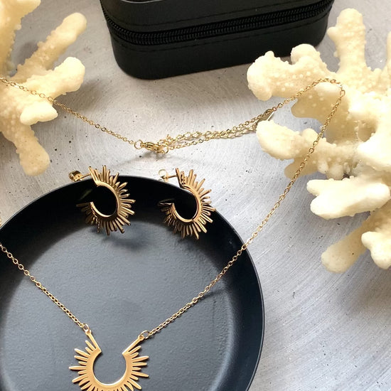 Dieses minimalistische Sonnen-Schmuckset steht für Wärme, Stärke und positive Energie.