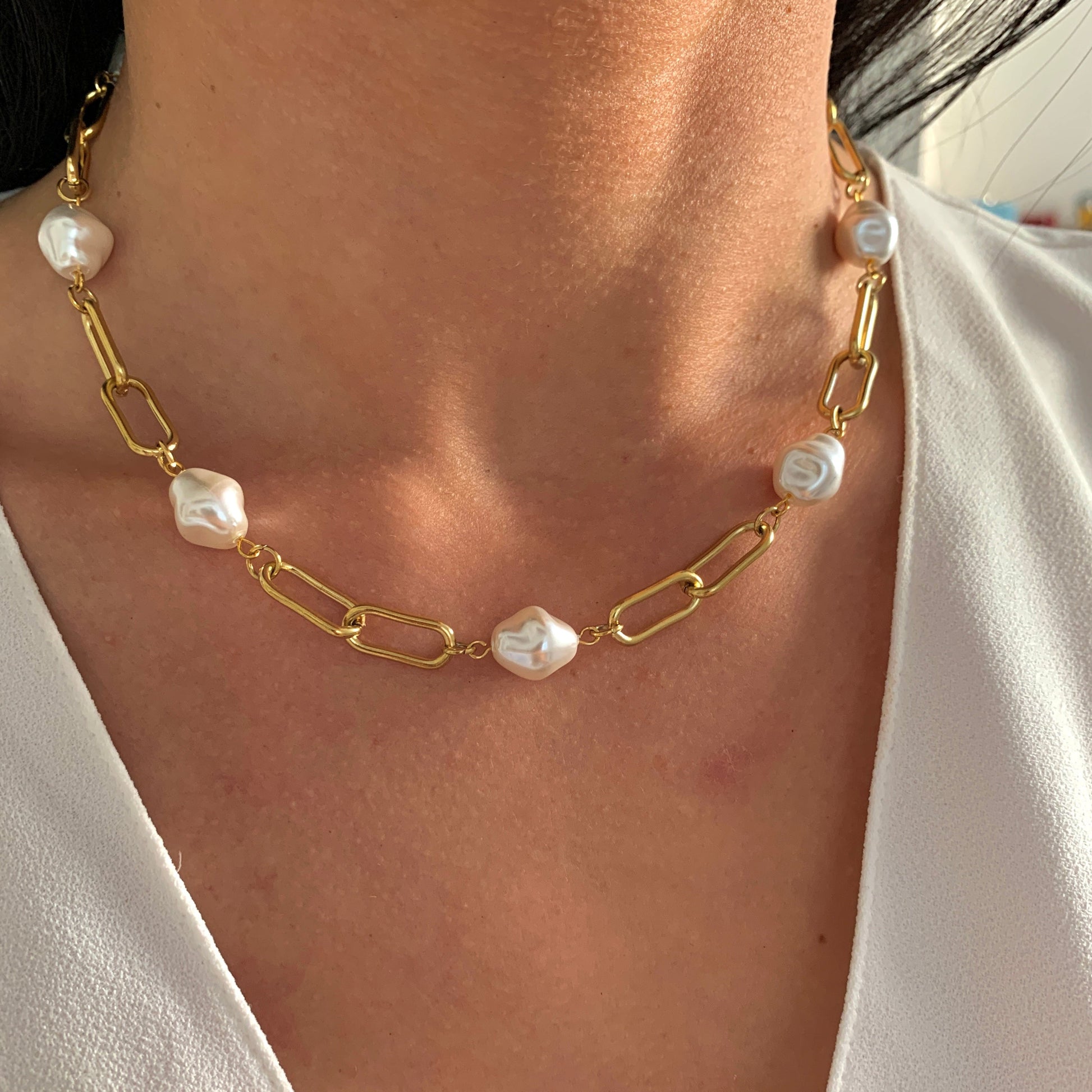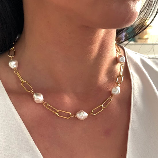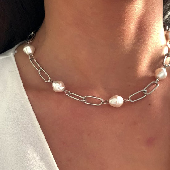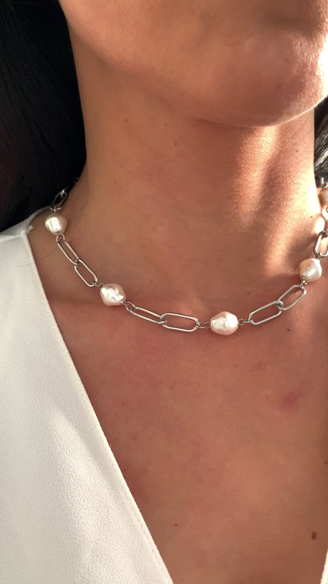 Die Kombination aus feinen Kettengliedern und dezent gesetzten Perlen verleiht dem Schmuckstück eine ruhige, feminine Ausstrahlung – zurückhaltend, aber besonders.