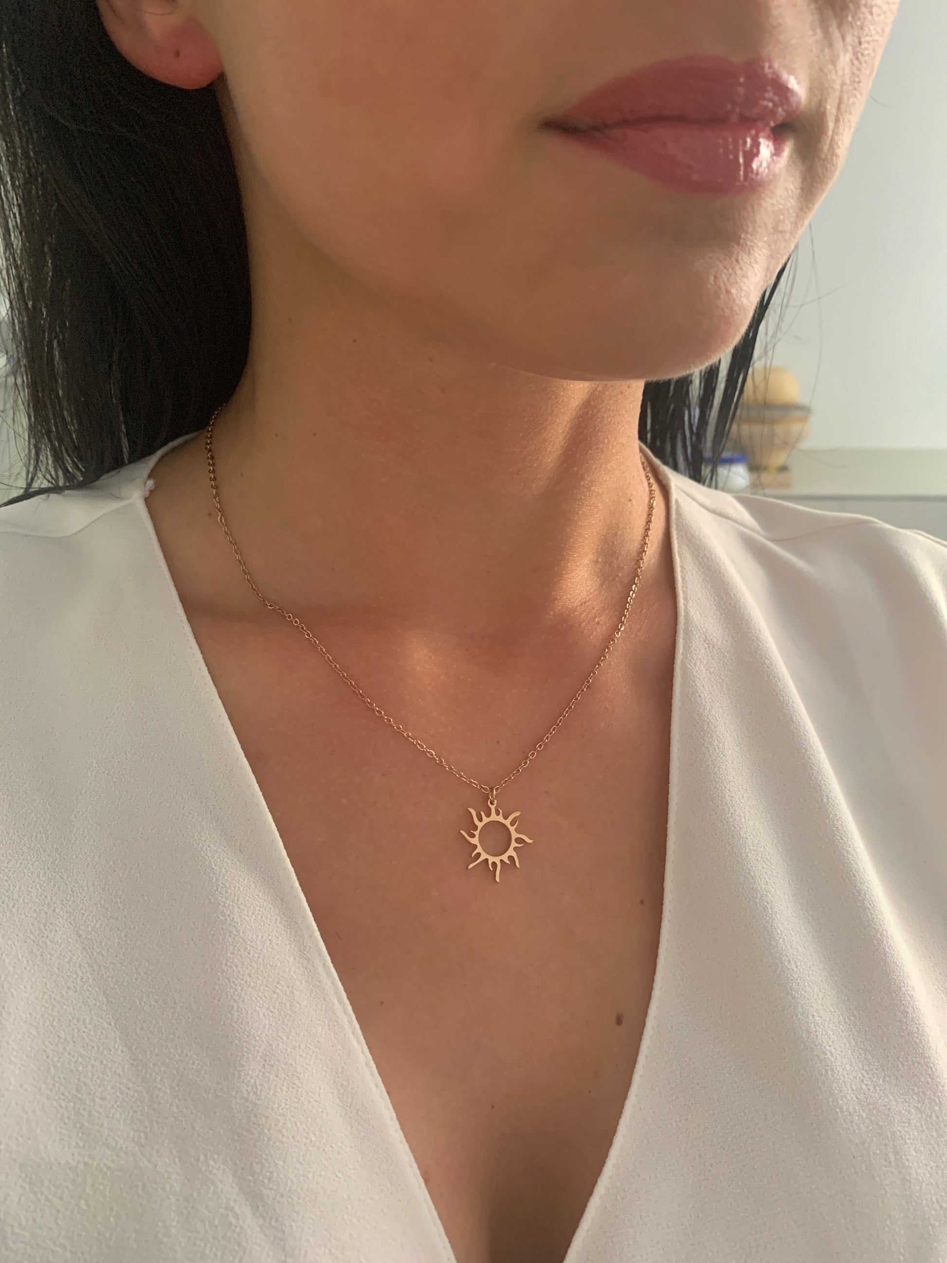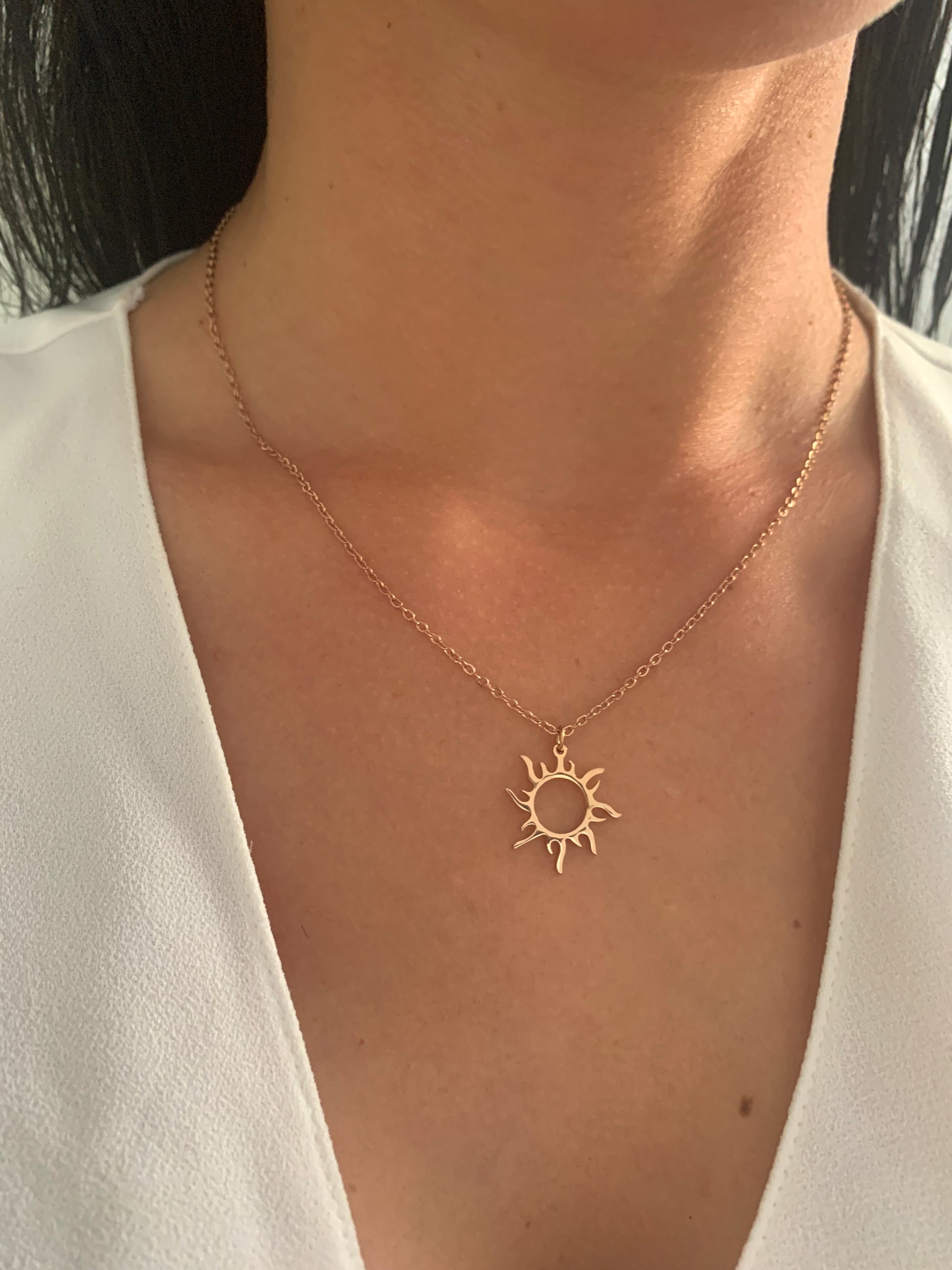 Der feine Sonnenanhänger wirkt leicht und elegant und verleiht dem Schmuckstück eine zeitlose, moderne Ausstrahlung.