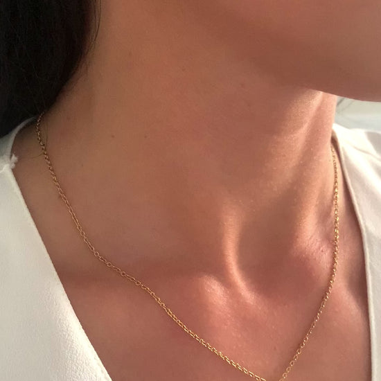 Die feste Kettenlänge sorgt für einen ruhigen, eleganten Sitz am Hals.